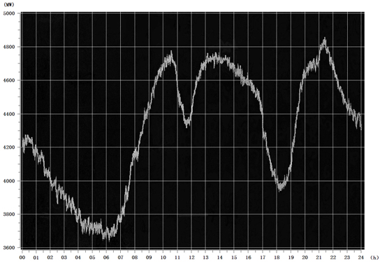 圖6為常州地區(qū)2010年最高日負(fù)荷曲線。由此可見,峰谷差達(dá)1250兆瓦,谷峰比不到0.75。尤其是20~22這個(gè)最高峰,這與此時(shí)電熱水器的使用不無關(guān)系。電網(wǎng)的峰谷差,不僅常州地區(qū),其他地區(qū)乃至世界都存在這一問題。谷電這種高級(jí)能源不能得到很好的利用,俗稱窩電,實(shí)為最大浪費(fèi)。
