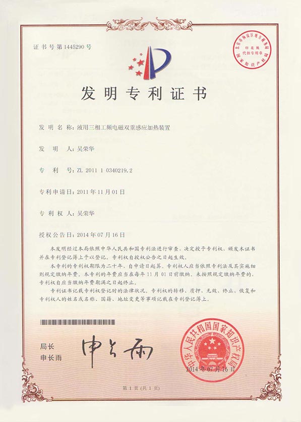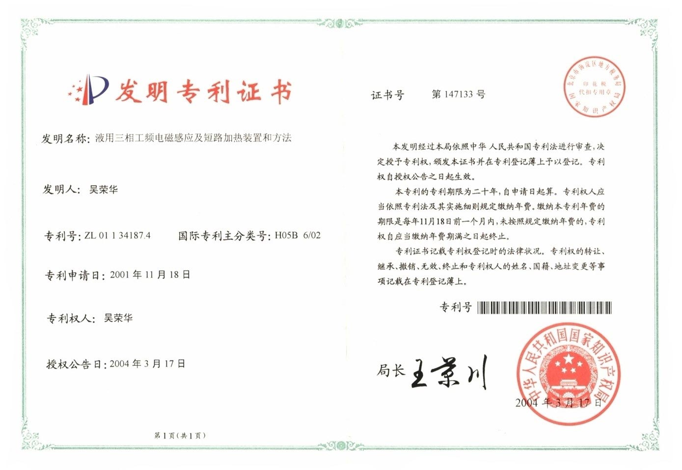 榮譽資質(zhì)- 工頻感應(yīng)電磁鍋爐銷售部:電話:0519-86973218 86957150